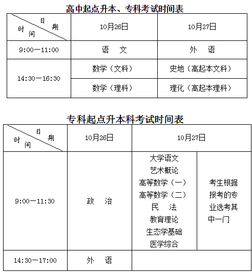 2019年安徽成人高考考試時間及科目