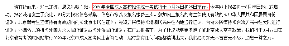 福建成人高考屬于全國統考,2020年福建成人高考將于10月24、25日舉行,所有統考科目按照按教育部《全國各類成人高等學校招生復習考試大綱》(2011年版)的要求命題,每科試題滿分均為150分;高中起點升本科、高中起點升專科的統考科目每門考試時間為120分鐘,??破瘘c升本科每門考試時間為150分鐘。