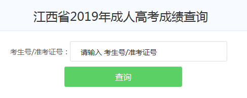 第三步:點(diǎn)擊進(jìn)入2019年江西成人高考成績(jī)查詢?nèi)肟冢斎肟忌?hào)或者準(zhǔn)考證號(hào)進(jìn)行查分。