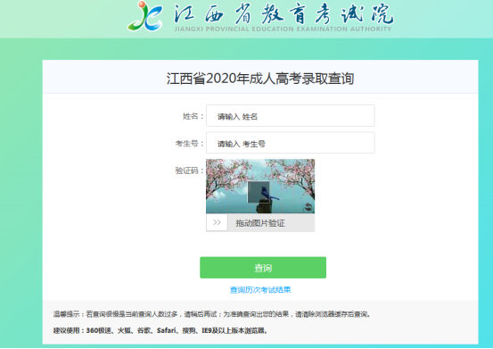 2020年江西省成人高考的錄取結果查詢網(wǎng)址為:江西省教育考試院
