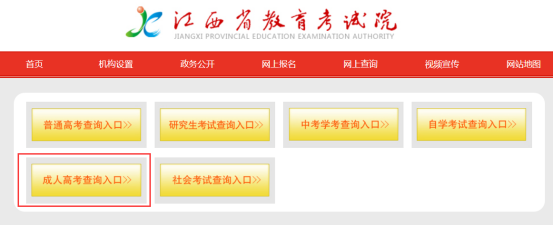 ②考生也可點擊“網(wǎng)上查詢-成人高考錄取結果查詢入口—江西省2020年成人高考錄取結果查詢”欄目。