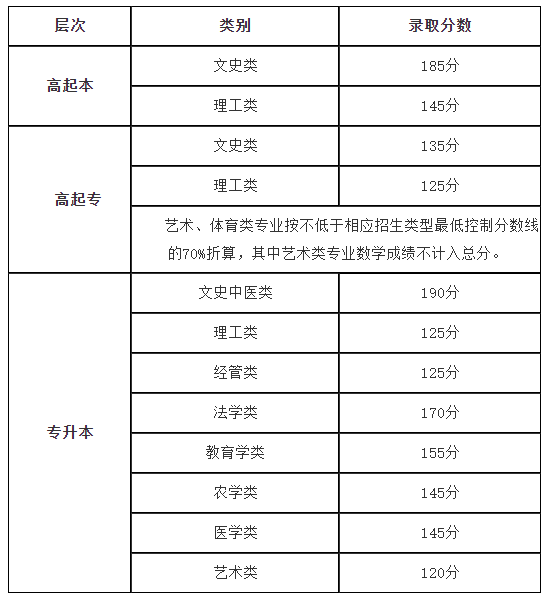 安徽成人高考錄取分數線會根據當年成人高校的招生計劃,結合報考人數和考生成績劃定,然后經招生委審定,公布后予以實行。現將2018年安徽成人高考錄取分數線公布如下,以供考生參考。